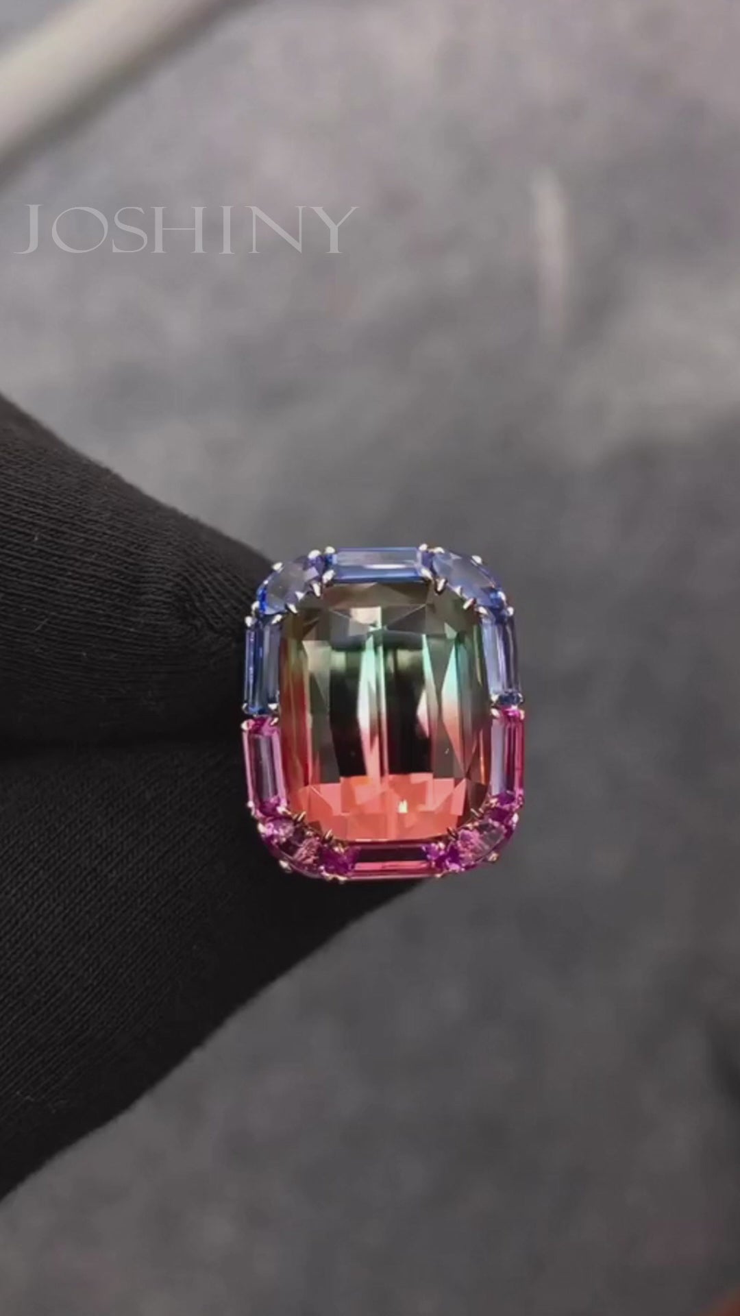 6.8ct Cushion Cut Bi-color Tourmaline Cocktail Ring