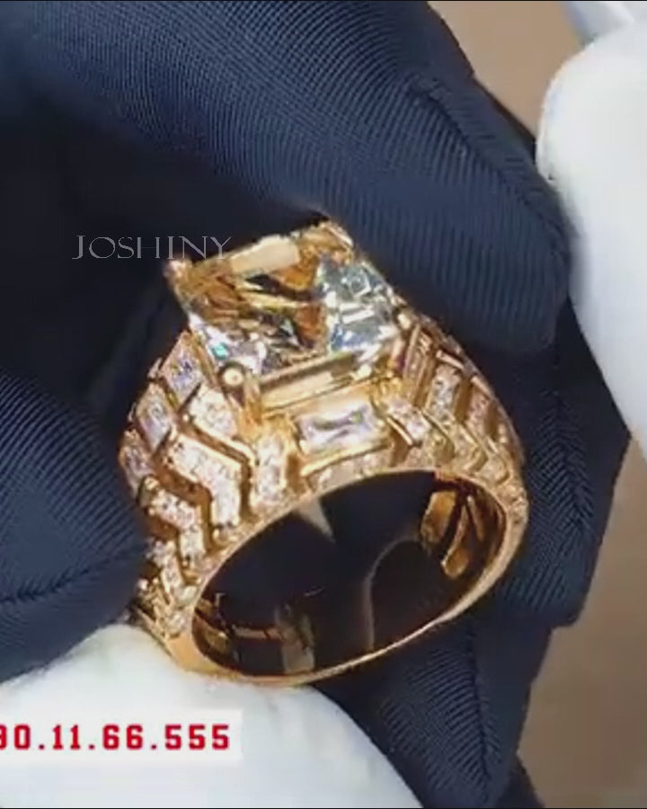 This luxurious gold ring, set with a dazzling square main stone and multiple side stones, showcases exquisite craftsmanship and radiance, exuding extraordinary temperament and noble taste, making it the most dazzling focal point on your fingertips.