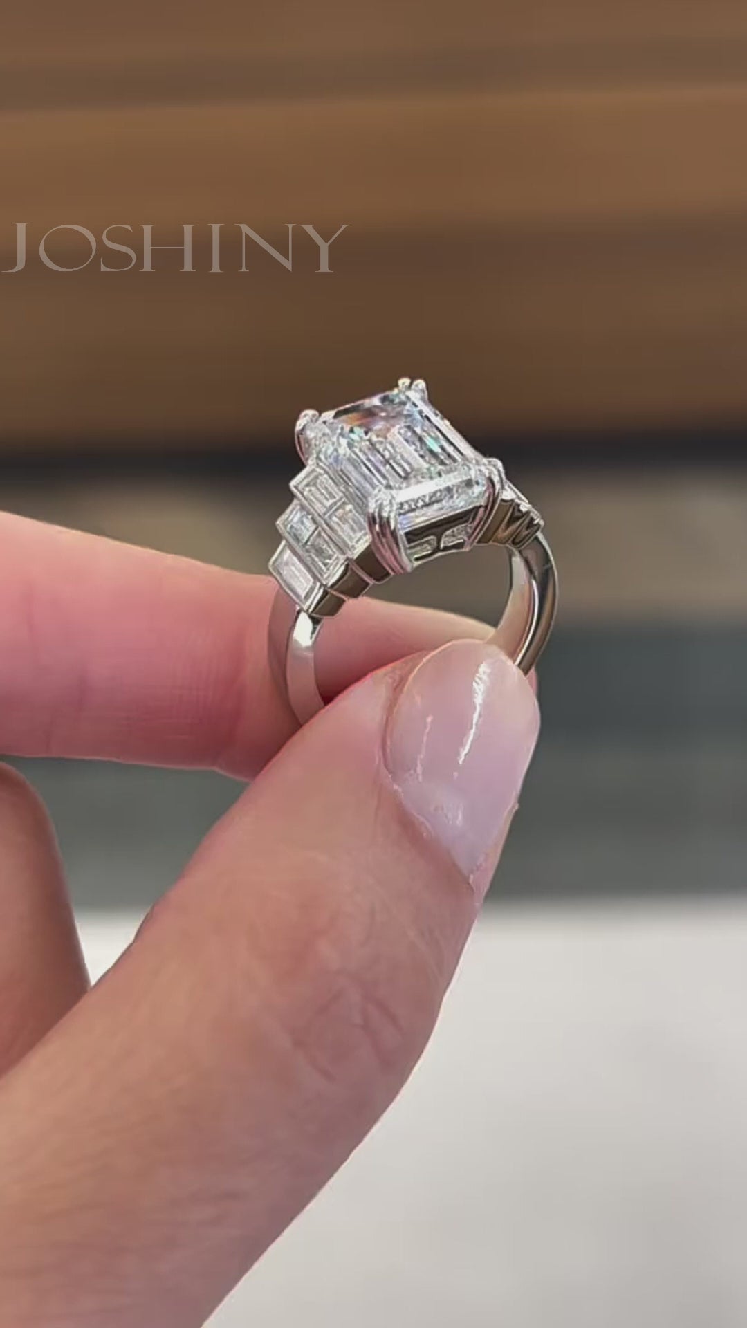 6 ctw Emerald Cut Step Engagement Ring -JOSHINY