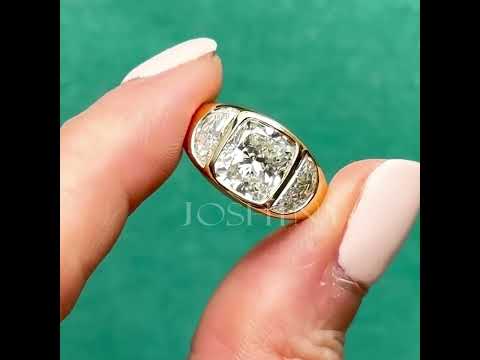 6ctw bezel set cushion cut and half moon cut three stone engagement ring -JOSHINY