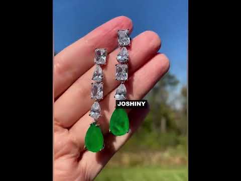 6ctw Multi-Cut Teardrop Green Gemstone Dangle Earrings -JOSHINY