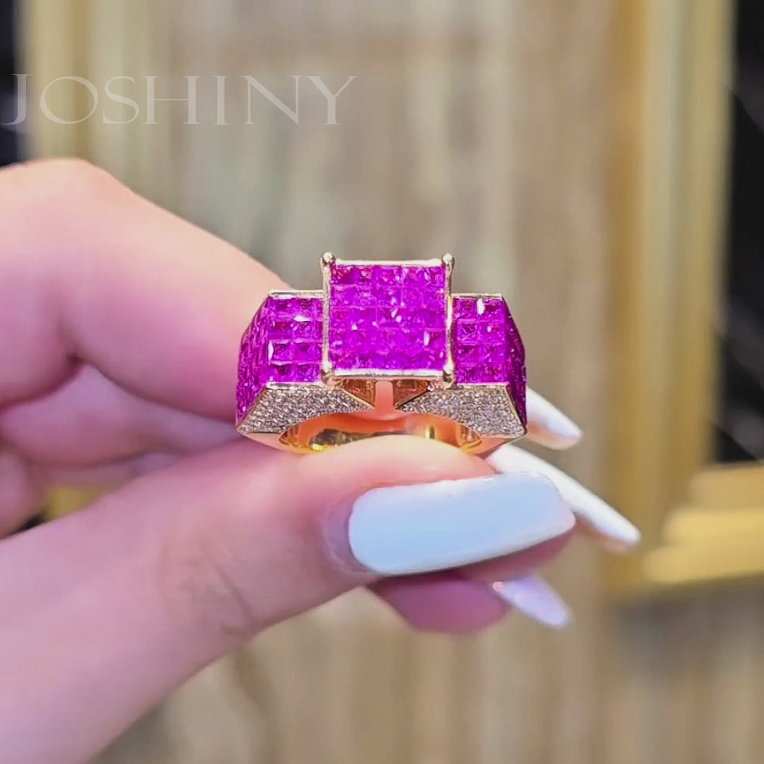6ctw Princess Cut Square Halo Gemstone Ring -JOSHINY