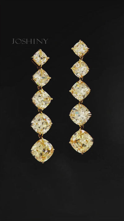 These exquisite yellow sapphire earrings are as dazzling as sunlight. Layers of cushion-cut gemstones sway gracefully with every step the wearer takes, capturing light and radiating captivating charm. They are the perfect choice to brighten any occasion, exuding elegance and luxury.