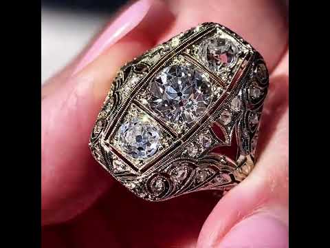 7.0ctw Old Mine Cut North and South Set Vintage Three Stone Engagement Ring -JOSHINY