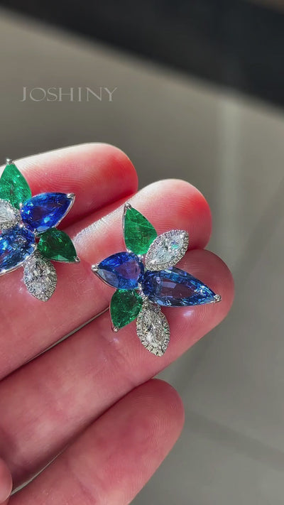 These sapphire and emerald flower gemstone earrings are exquisitely designed and brightly colored, exuding elegance and exceptional taste when worn.