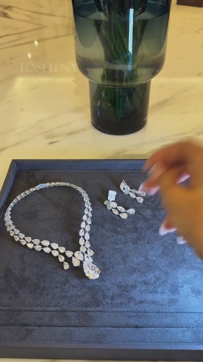 This exquisite gemstone necklace features a dazzling pear-shaped diamond as its centerpiece, surrounded by numerous sparkling gemstones. Its superb craftsmanship and radiant brilliance exude luxury and elegance. It instantly makes the wearer the center of attention, making it the perfect choice for important occasions. Limited edition, don't miss out!