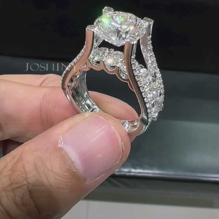 7Ctw Round and oval gemstone elevated engagement ring-JOSHINY