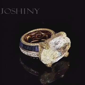 8.0ct Oval Cut Yellow and Blue Stones Ring -JOSHINY
