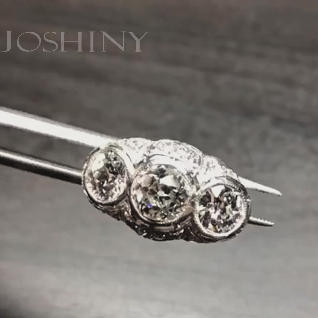 8.3ctw Old Mine Cut Antique Estate 3 Stone Ring -JOSHINY