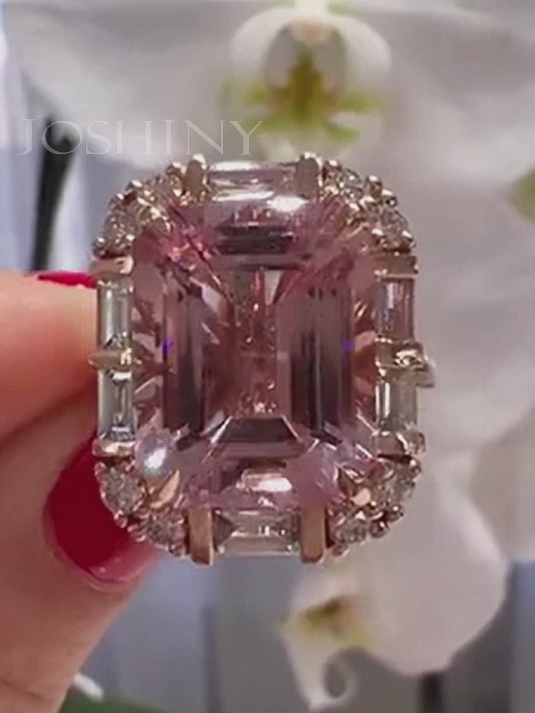 8.4ct Pink Emerald Cut Diamond Engagement Ring
