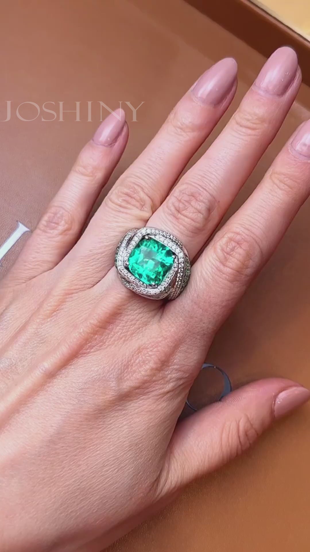 8.53ct Emerald Woven Diamond Ring -JOSHINY
