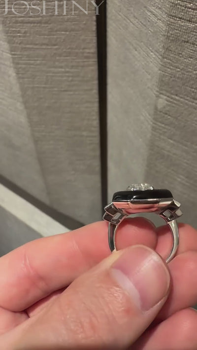 8.5Ctw Marquise Gem Black Enamel Ring