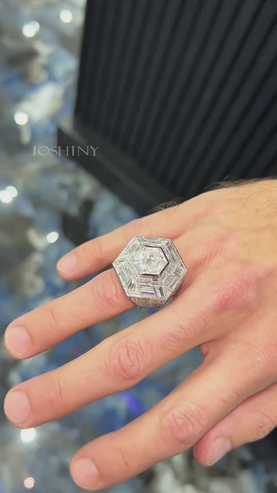 8.6Ctw Hexagonal Invisible Gemstone Ring-JOSHINY