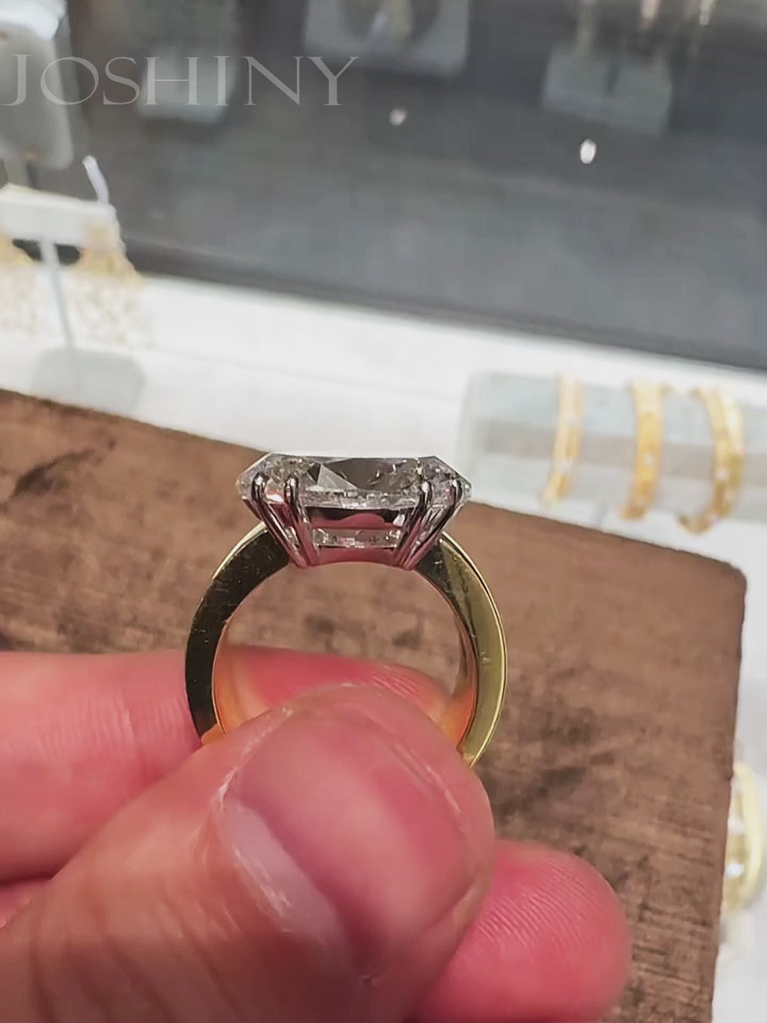 This ring has a strikingly simple design and can be worn by both men and women. Featuring an 8 carat oval cut white gemstone with a gold widened band arm. It looks unique and high quality. Â The ring is made of 925 silver throughout, with thick gold plating, which makes the luster last longer compared to other single layer plating. The style is personalized and simple, bringing more possibilities for your fashion collocation.