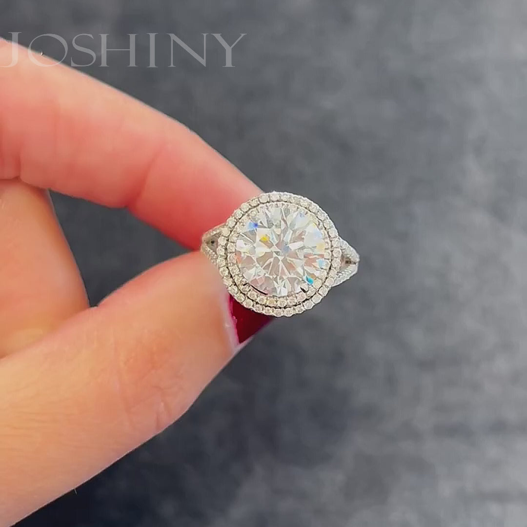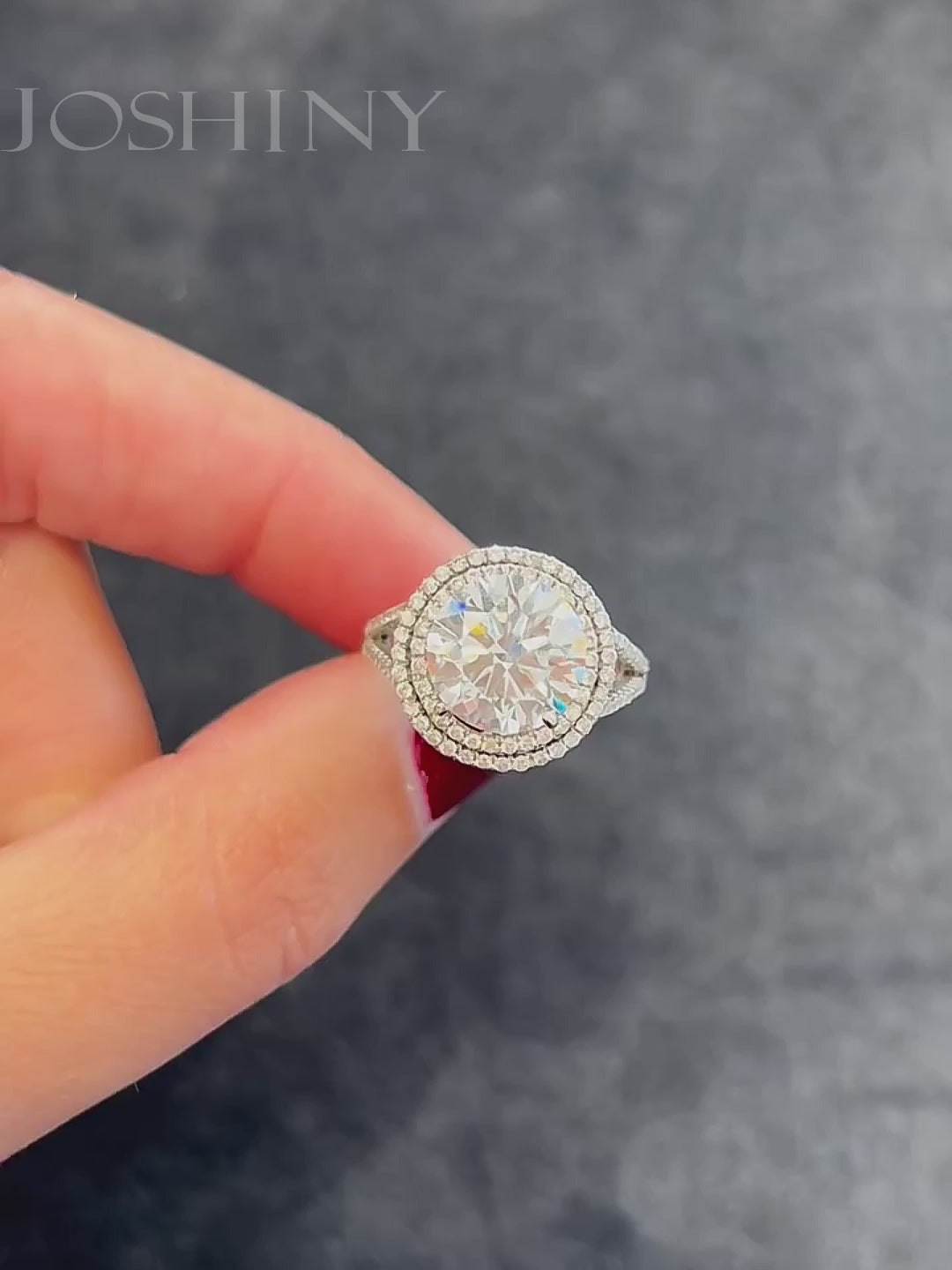 8 ctw Round Cut White Gemstone Double Halo Engagement Ring -JOSHINY