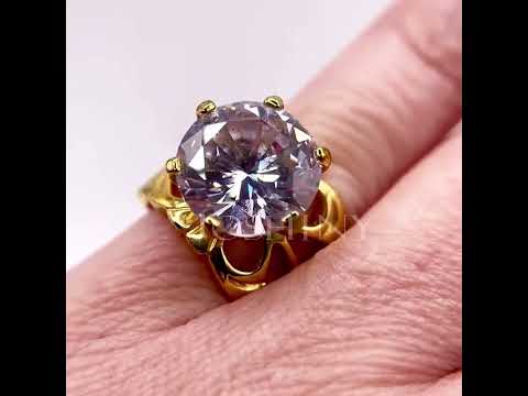 The openwork arm pattern gives this ring a distinctive vintage look, and the main stone weighs 8.0ct in a classic round cut. Add sparkle to your outfit!