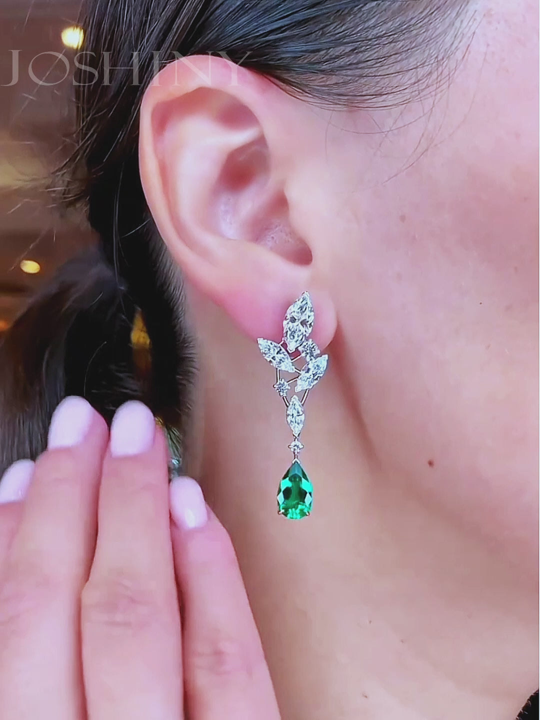 This is an 8ctw geometric design earring. The pear cut emerald main stone is clean and bright. Marquise and  round cut white sub-stones are simply aligned. It looks premium and sophisticated. The bracelet is made of 925 silver throughout, with thick gold plating, which makes the luster last longer compared to other single layer plating. The style is personalized and simple, bringing more possibilities for your fashion collocation.