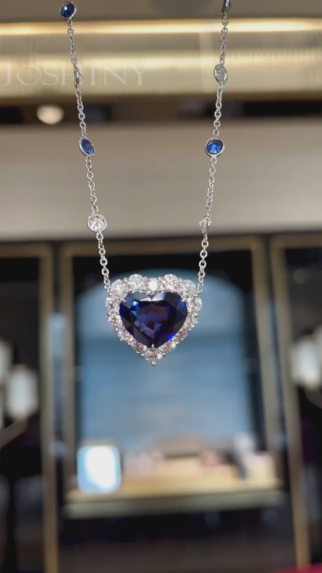 9.0ct Heart Blue Gemstone Pendant Necklace -JOSHINY