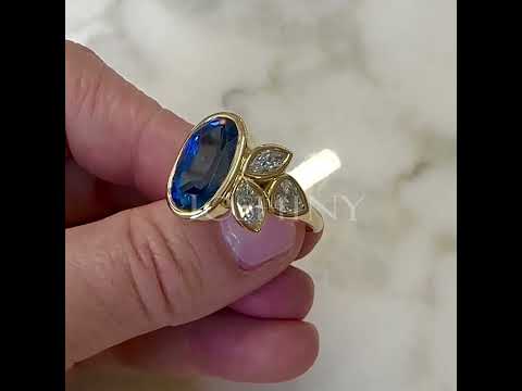 9.0ct Oval Cut Blue Stone Bezel Set Engagement Ring -JOSHINY