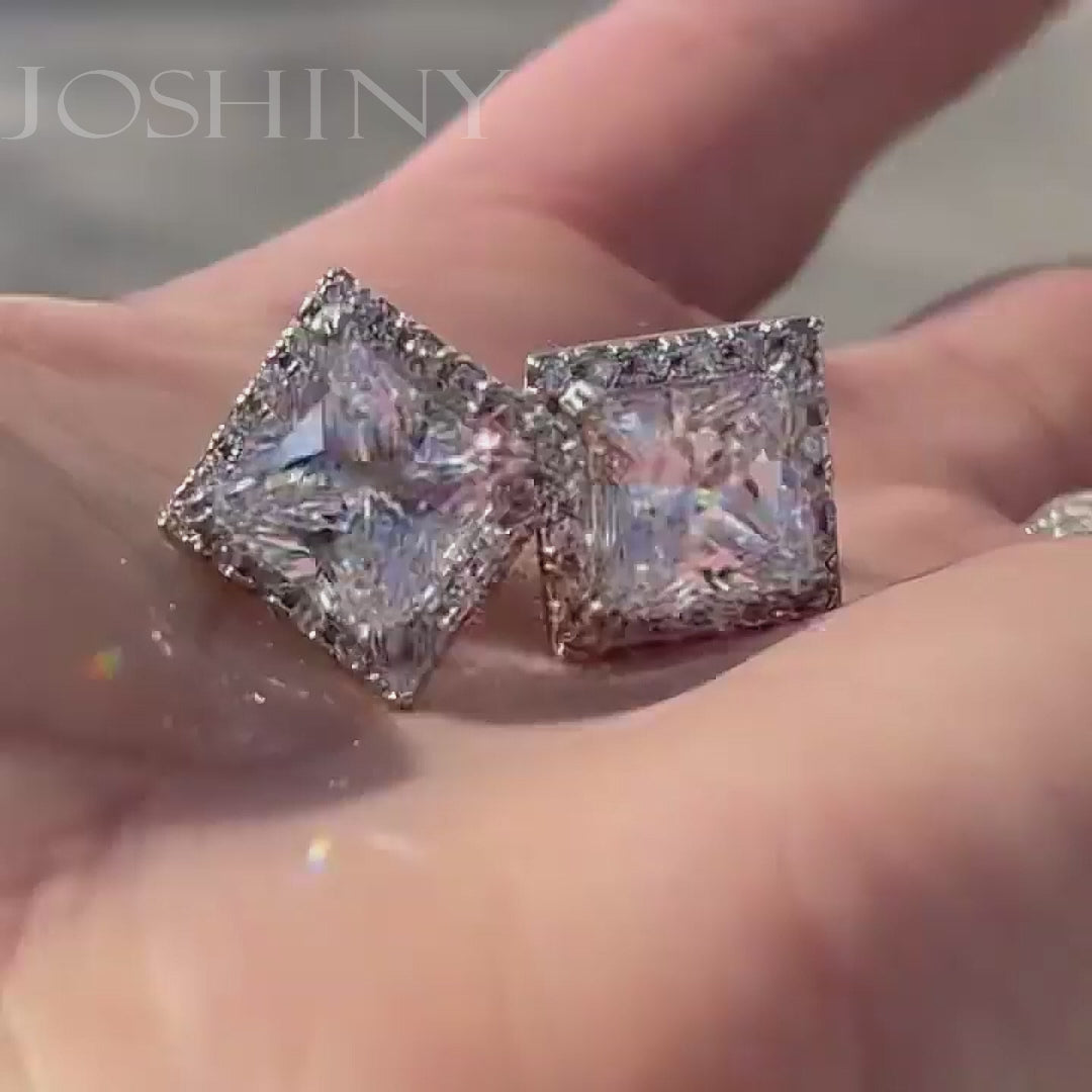 9 ctw Princess Square Cut White Gemstone Halo Stud Earrings -JOSHINY