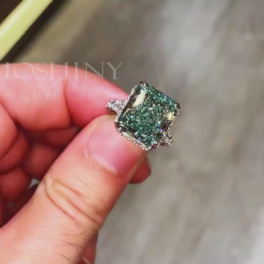 9ct Radiant Cut Fancy Green Gemstone Engagement Ring -joshiny