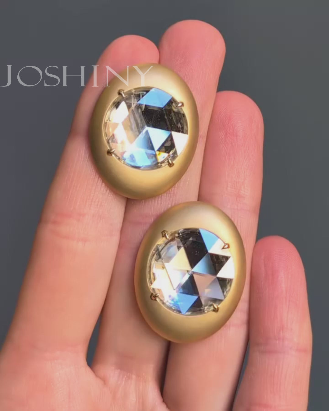 A pair of rose-cut gemstone earrings, each round gemstone set in an 18K brushed gold oval base, each weighing 4.50 carats.
