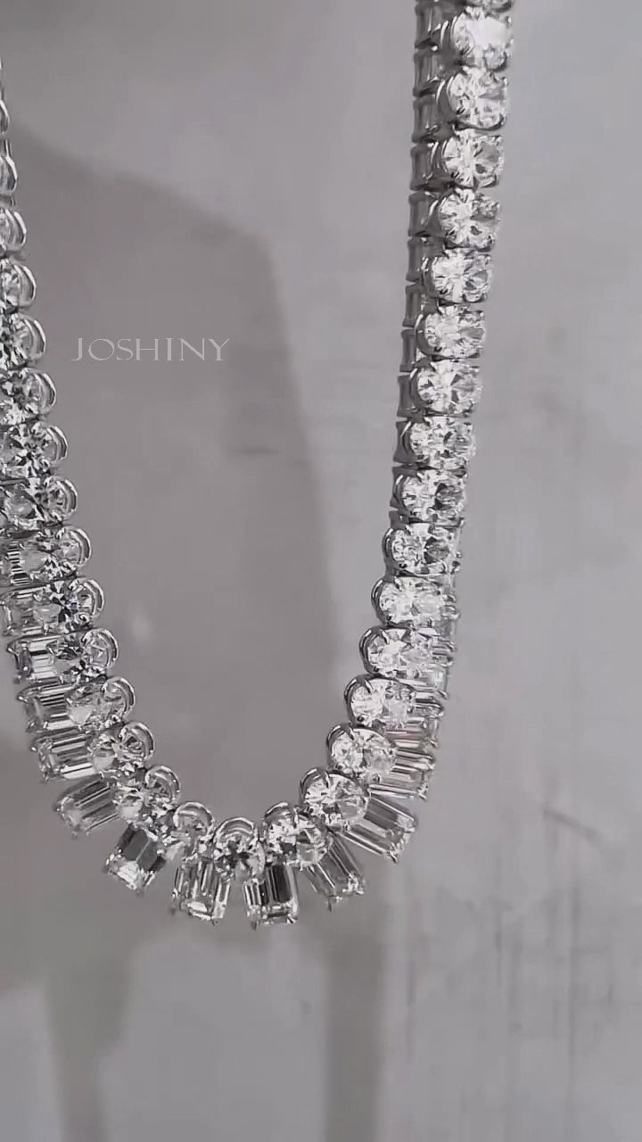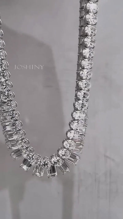 A collection of tennis necklaces with various cut gemstones-JOSHINY