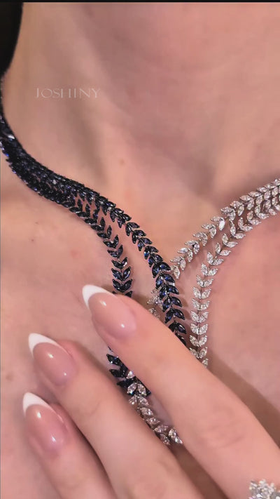This sapphire necklace and earrings use exquisite craftsmanship to create a leaf shape, intertwined with blue and white, and are dazzling. The moment you wear it, you will show your elegant and noble temperament. It is the perfect choice for you to attend important occasions.