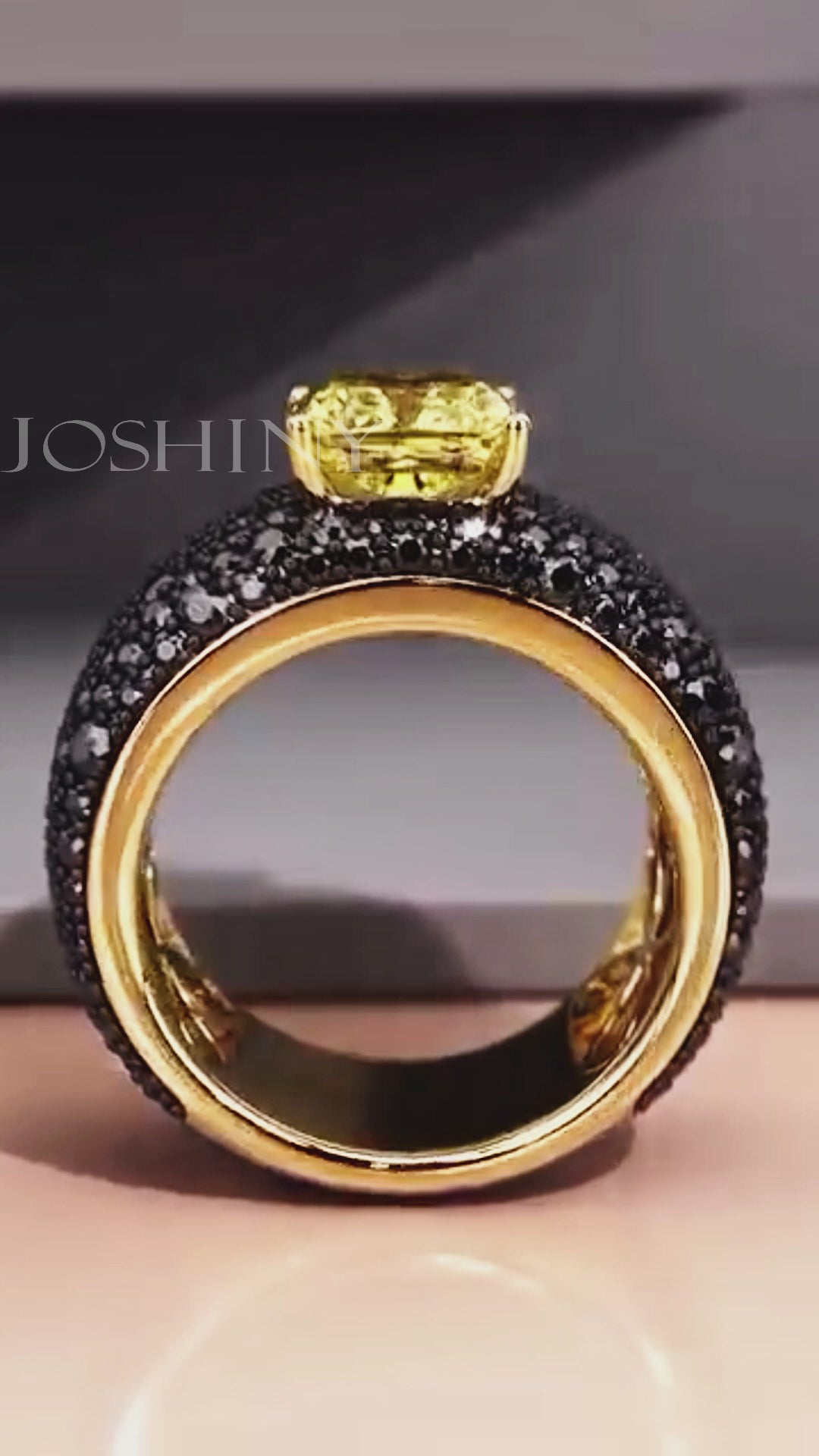 This stunning set is a beautiful work of art made of black pavé spinel and black plated 925 silver with a canary yellow cushion cut zircon in the center.