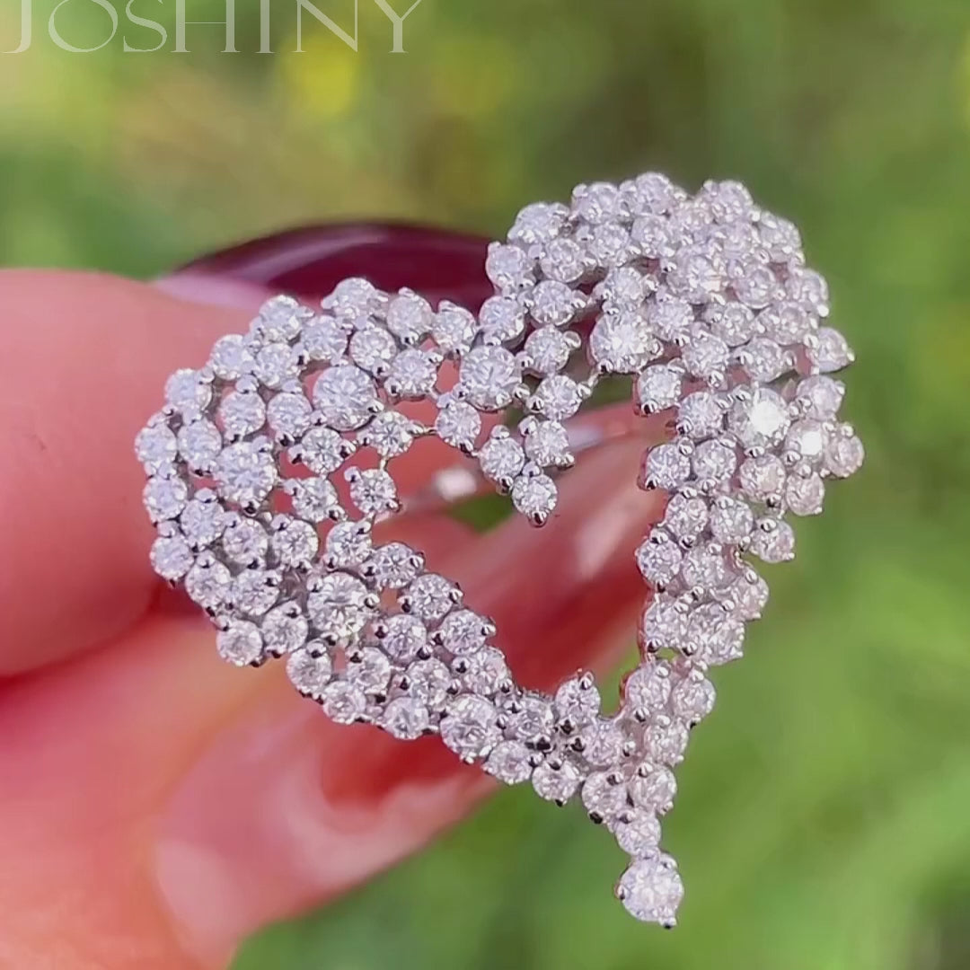Charming 2 ctw Round Cut White Gemstone Heart Cluster Ring -JOSHINY