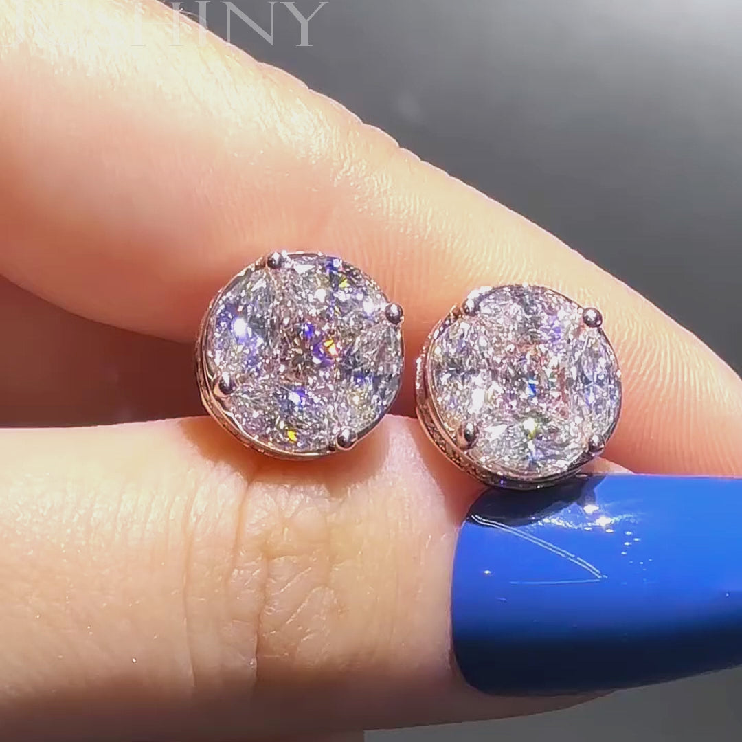 Classic 2 ctw Round & Marquise Cut White Gemstone Pavé Stud Earrings -JOSHINY