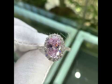 Classic 6 ctw Oval Cut White & Pink & Yellow Halo Engagement Ring -JOSHINY