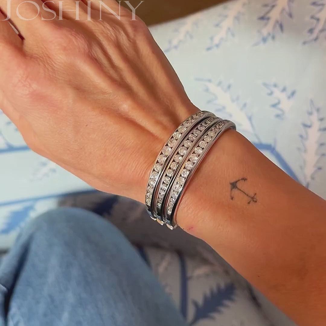 This is a bracelet with a simple and stylish design that can be worn by both men and women! Set with a combination of brilliant round cut white gemstones. The craftsmanship is exquisitely detailed and sparkling! The style is classic and simple, comfortable to wear, perfect for everyday wear. Total weight is approximately 6 carats.The bracelet is made of 925 silver throughout, with thick gold plating, which makes the luster last longer compared to other single layer plating. The style is stylish and classic, bringing more possibilities for your fashion collocation.
