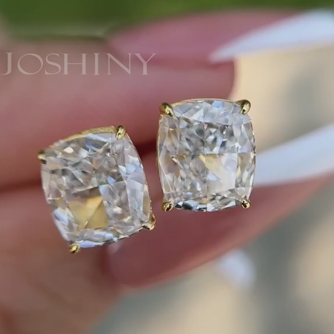 Classic Cushion Cut Stud Earrings in 4.0ct Sterling Silver -JOSHINY