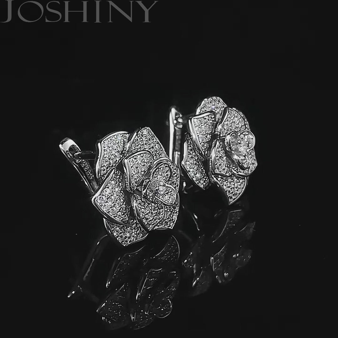 Delicate 5 ctw Round Cut White Gemstone Pavé Set Camellia Earrings -JOSHINY
