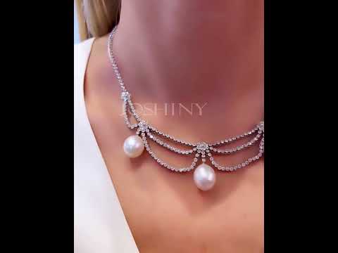 This elegant necklace is suitable for many occasions. Set with a combination of brilliant round cut white stones and pearls. The design is simple and stylish with exquisite and delicate craftsmanship. Total weight is approximately 10 carats. The necklace is made of 925 silver throughout, with thick gold plating, which makes the luster last longer compared to other single layer plating. The style is elegant and simple, bringing more possibilities for your fashion collocation.