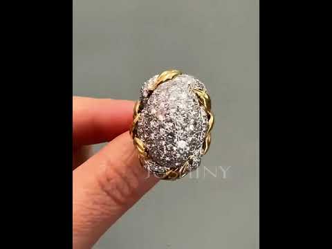 This is a uniquely designed ring. Gorgeous bright round cut white gemstone pave with soft and delicate gold ribbon styling. Gives this ring a vintage elegant look. The exquisite craftsmanship sparkles at every angle. Total weight is approximately 2 carats. The ring is made of 925 silver throughout, with thick gold plating, which makes the luster last longer compared to other single layer plating. The style is personalized and elegant, bringing more possibilities for your fashion collocation.