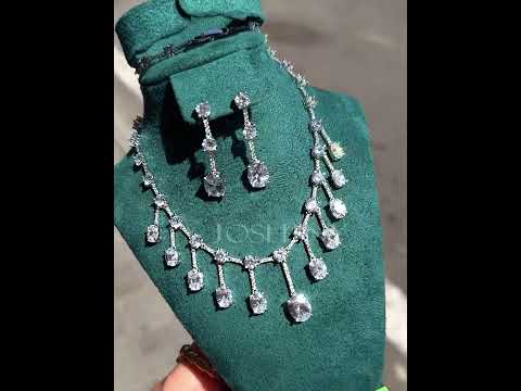 Elegant 20 ctw Oval & Round White Gemstone Earrings & Necklace Set -JOSHINY