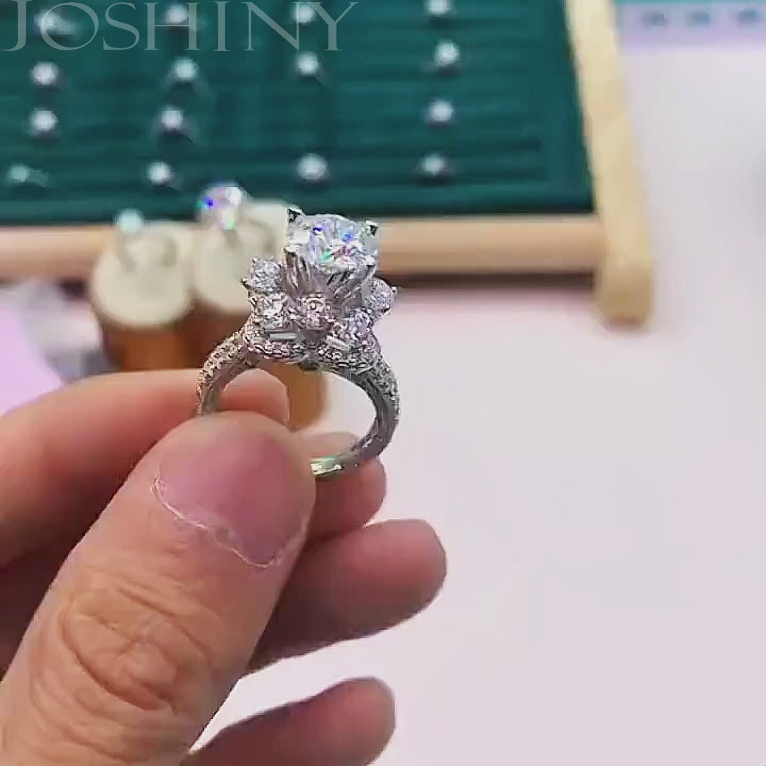 Elegant 3 ctw Round Cut White Gemstone Bouquet Engagement Ring -JOSHINY