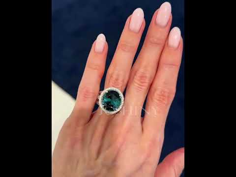 Elegant 5 ctw Round Cut Dark Green Gemstone Cocktail Ring -JOSHINY