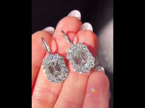 These stunning earrings will go with almost most of your outfits! The center features two beautiful emerald cut white main stones surrounded by brilliant round cut white stones of varying sizes. The design is elegantly simple and the craftsmanship is exquisitely sparkling. Total weight is approximately 7 carats.The earring is made of 925 silver throughout, with thick gold plating, which makes the luster last longer compared to other single layer plating. The style is elegant and simple, bringing more possibilities for your fashion collocation.