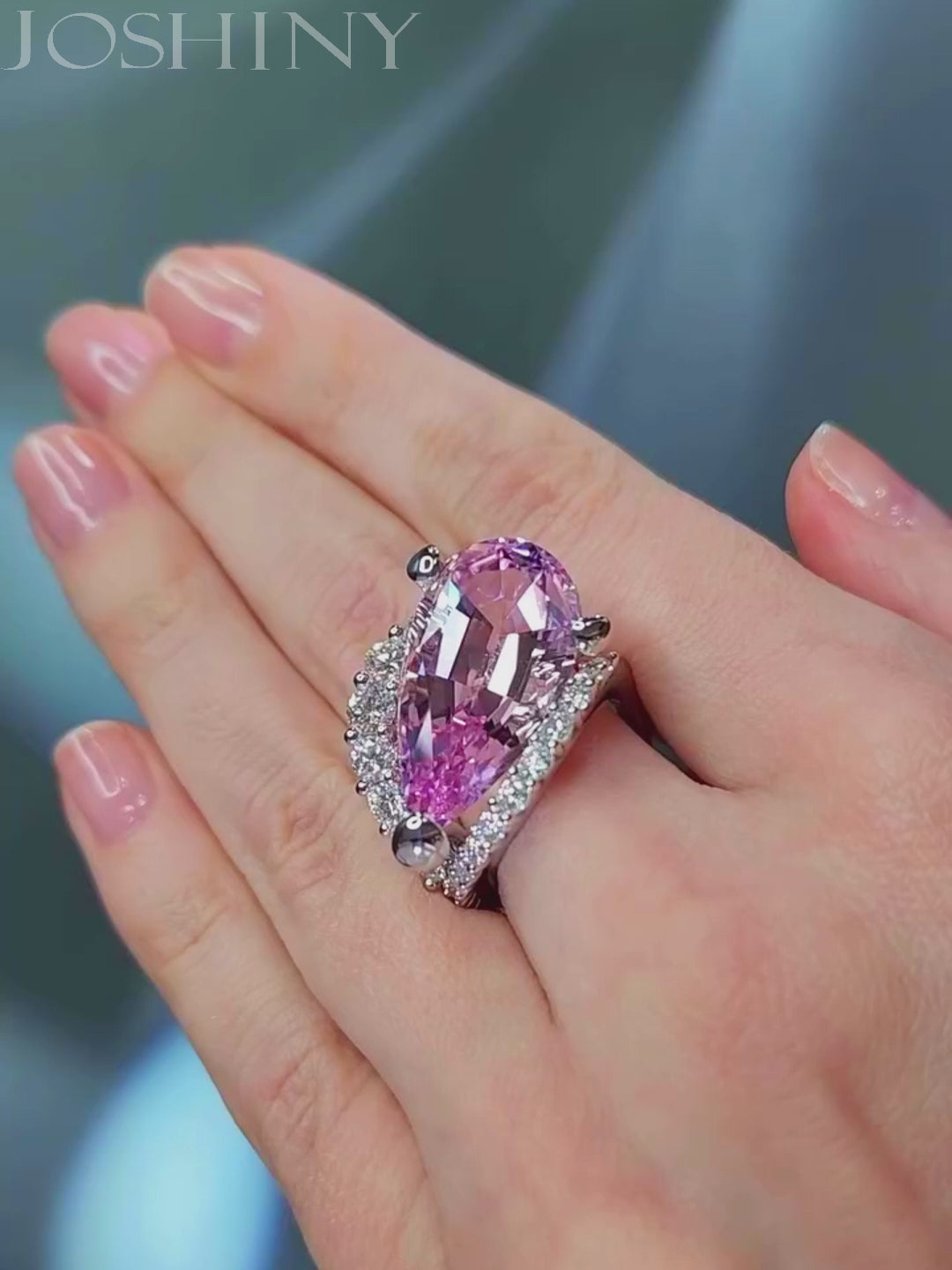 Elegant 8 ctw Pear Cut Pink Gemstone Cocktail Ring -JOSHINY