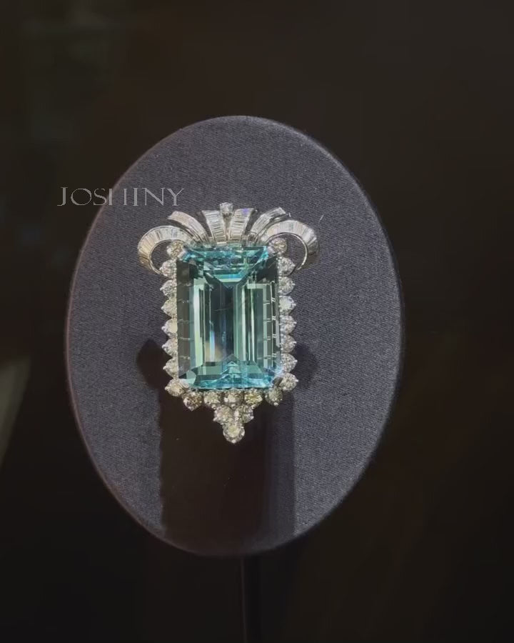 This aquamarine set features emerald-cut aquamarines as the main stones, accented with round brilliant-cut and baguette-cut gemstones. It's the most eye-catching design set.