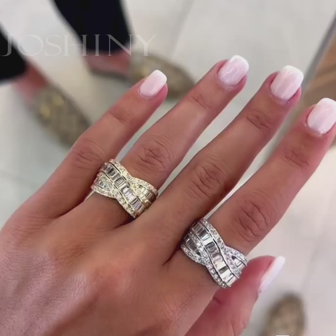 Fall in love with the pavé diamonds and snake design on this ring. The diamonds have a total weight of 5.0 ct. The ring is made of 925 silver, which has a thicker layer of gold plating for a longer lasting shine than other single layer gold plating. This ring is a beautiful and romantic style that will bring more possibilities to your fashion life.