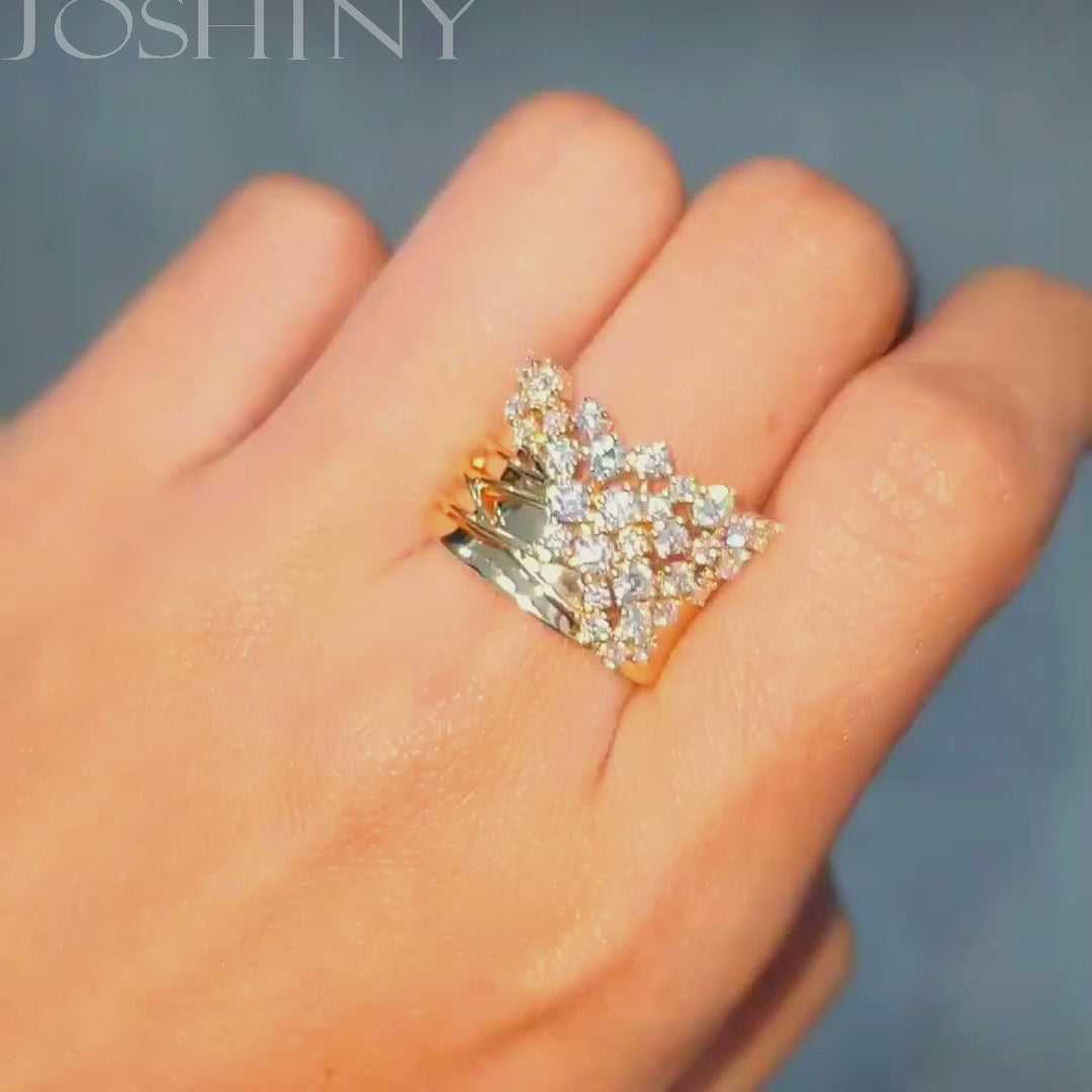 This is a ring with a delicate and elegant design. Set with a cluster of brilliant round cut white stones, the gold colored band arm is stylish and comfortable, and the craftsmanship is exquisitely detailed and sparkling. Perfect for everyday wear. Total weight is approximately 1 carat.The ring is made of 925 silver throughout, with thick gold plating, which makes the luster last longer compared to other single layer plating. The style is personalized and exquisite, bringing more possibilities for your fashion collocation.