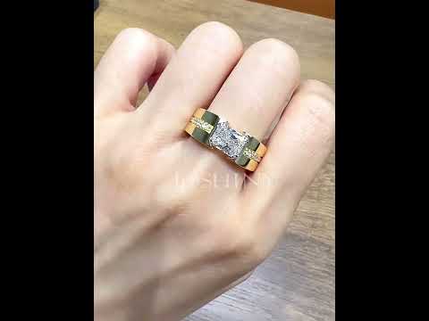This engagement ring has a classic and minimalist design with delicate and sparkling craftsmanship and is comfortable to wear for both men and women. The center features a sparkling radiant cut white main stone, and the arms are accented with brilliant round cut white stones. Perfect for many occasions. Total weight is approximately 3 carats.The ring is made of 925 silver throughout, with thick gold plating, which makes the luster last longer compared to other single layer plating. The style is classic and exquisite, bringing more possibilities for your fashion collocation.