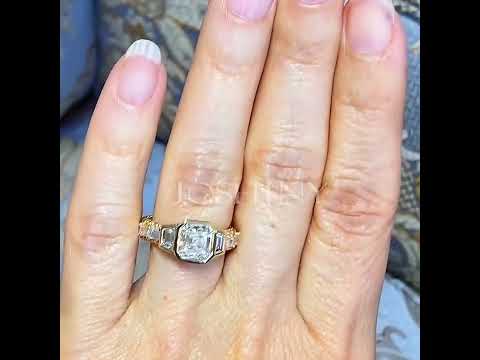 This is a classic three-stone engagement ring with a stylish design and exquisite, delicate craftsmanship, perfect for everyday wear. The center features a brilliant square cut white main stone, and the sides and arms are set with a combination of trapezoidal, baguette cut white stones. Total weight is approximately 3 carats.The ring is made of 925 silver throughout, with thick gold plating, which makes the luster last longer compared to other single layer plating. The style is classic and exquisite, bringing more possibilities for your fashion collocation.