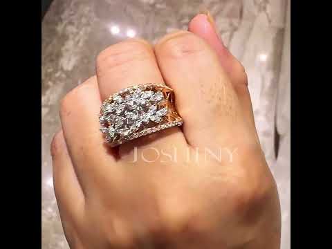 Make a statement with this charming floral ring! The delicate flower bush is pave-set with brilliant round-cut white stones and is very distinctive with the gold openwork ring wall. It looks sparkling at every angle on your finger! Perfect for many occasions. Total weight is approximately 5 carats.The ring is made of 925 silver throughout, with thick gold plating, which makes the luster last longer compared to other single layer plating. The style is personalized and exquisite, bringing more possibilities for your fashion collocation.