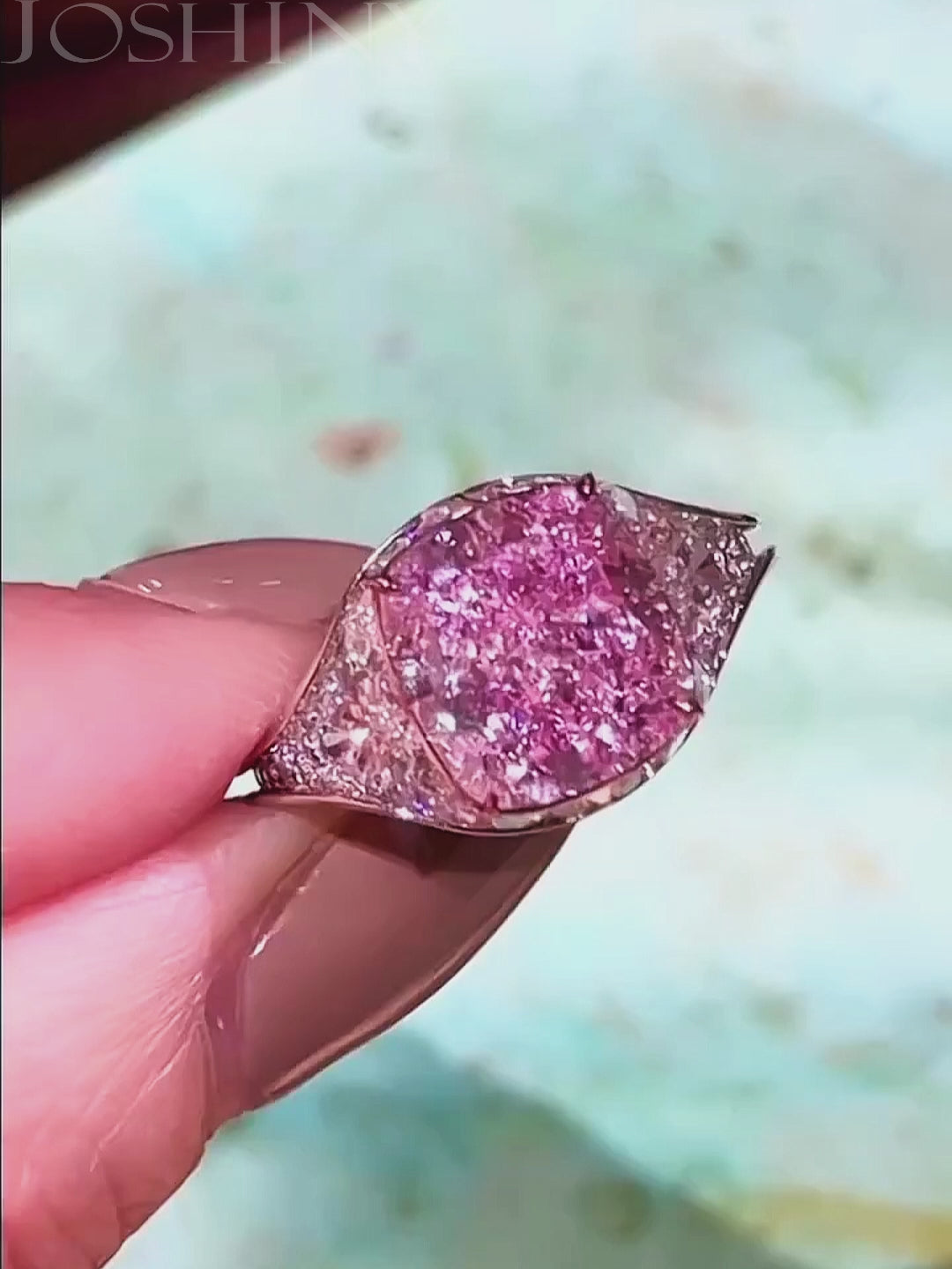 Exquisite 6 ctw Cushion Cut Pink Gemstone Ring -JOSHINY