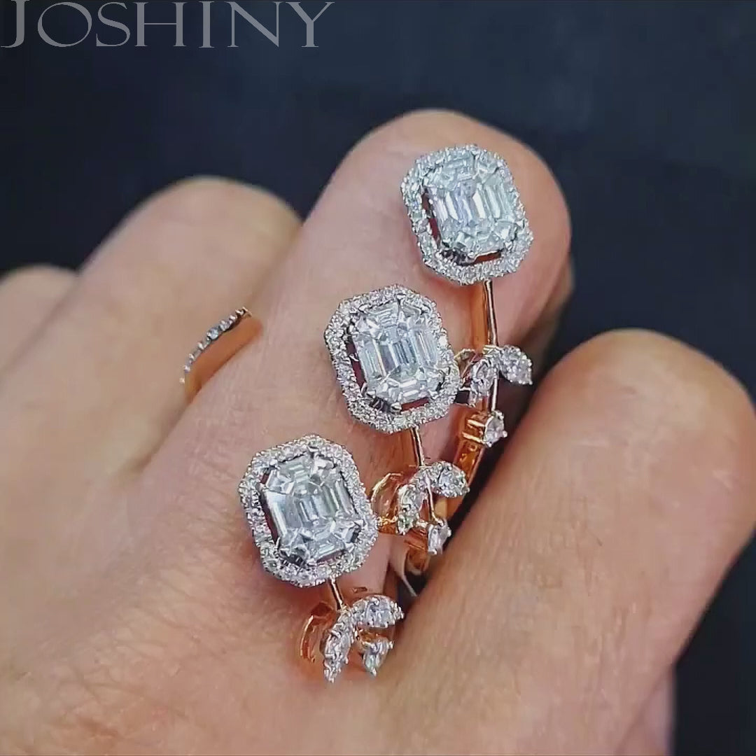 This is a ring with a unique and stylish design that makes a statement! Set with a combination of brilliant octagonal and round cut white stones. The entire ring is exquisitely crafted and sparkling! Perfect to wear with many occasions. Total weight is approximately 6 carats.The ring is made of 925 silver throughout, with thick gold plating, which makes the luster last longer compared to other single layer plating. The style is personalized and stylish, bringing more possibilities for your fashion collocation.